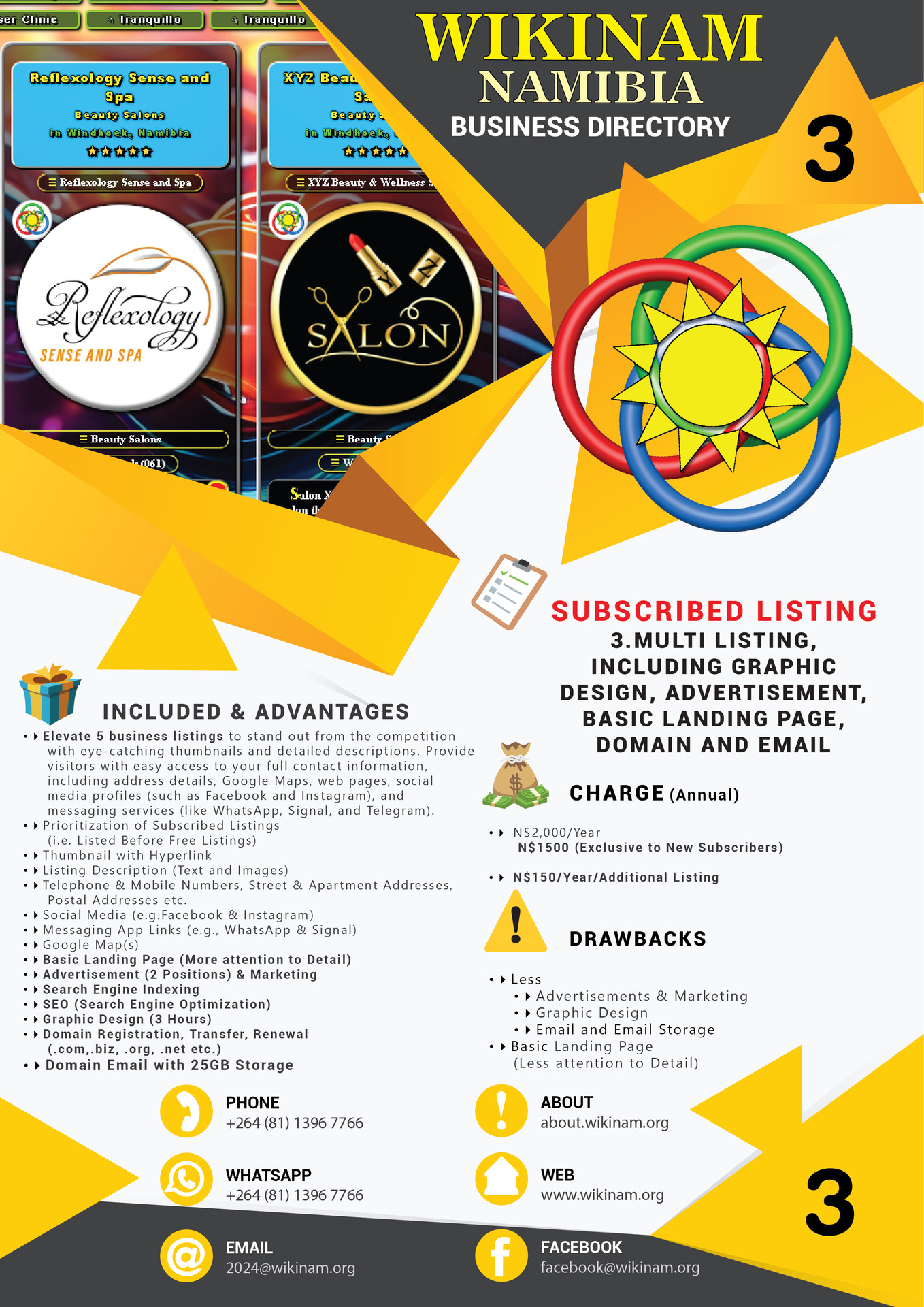 A professionally crafted Namibian Yellow Page Business Directory, tailored specifically for the needs of the Namibian community. This comprehensive directory offers a user-friendly platform for businesses across Namibia, designed to connect professionals and customers with ease